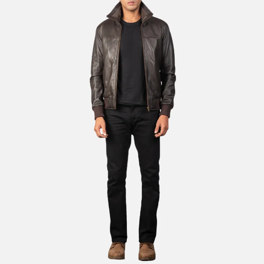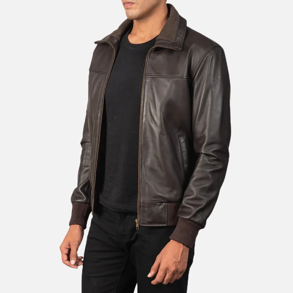 Air Rolf Brown Leather Bomber Jacket