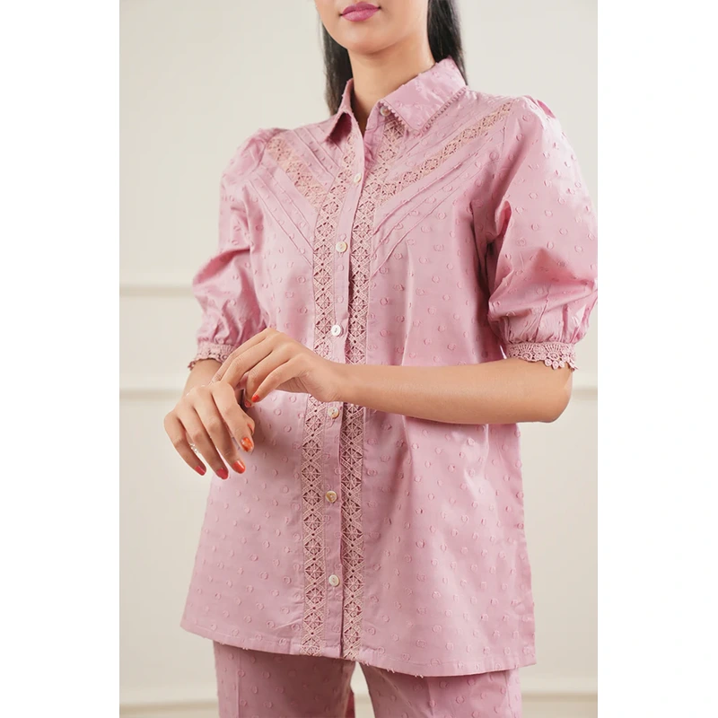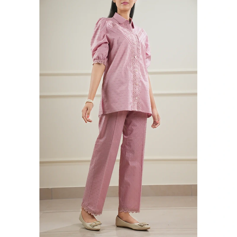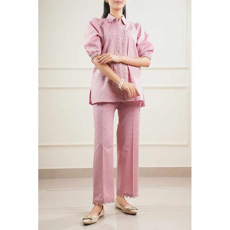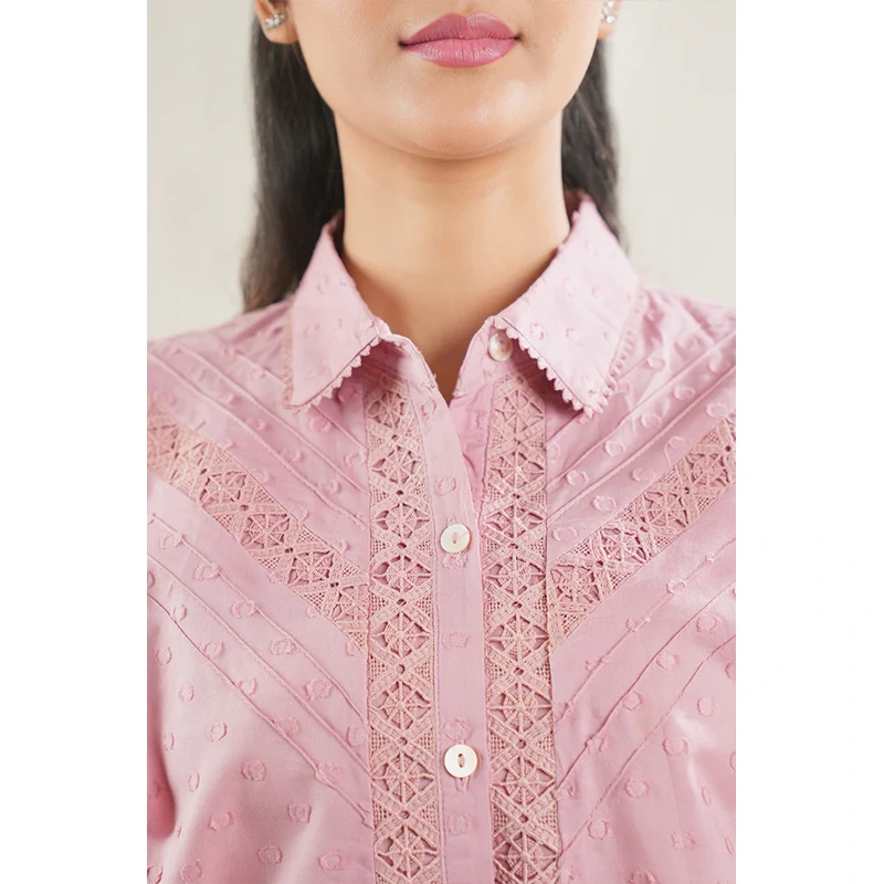 Dusky Pink Reverse Jacquard Stitched Shirt From SAYA Features Readily Wearable Reverse Jacquard Fabric With Subtle Texture And Rich Feel. The Shirt Is Professionally Tailored With Clean Cuts, Neat Collar, And Comfortable Fit. Ideal For Semi-Formal Occasions, Office Wear, Or Stylish Casual Outings Where You Want Texture Without Overstatement.