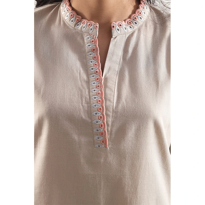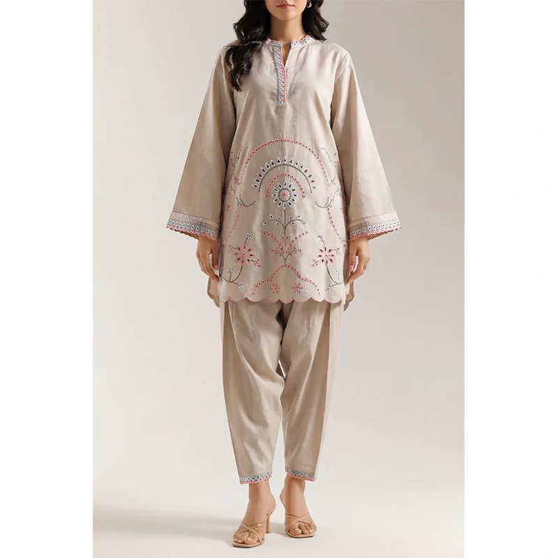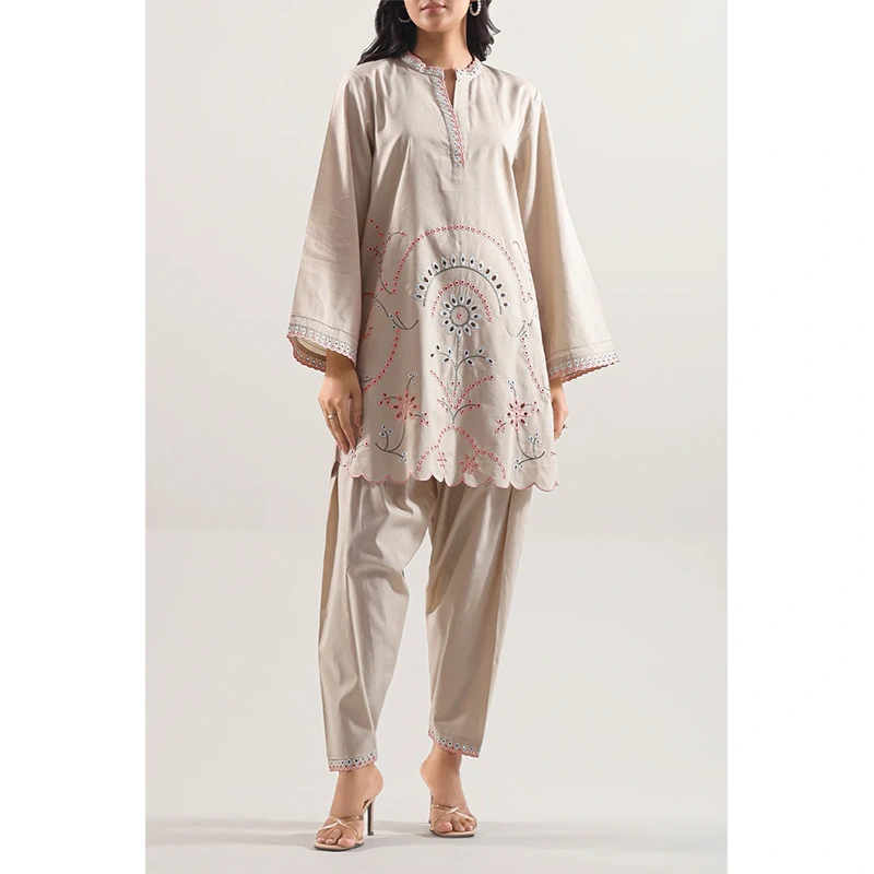 Solid Embroidered Cambric Stitched 2-Piece By SAYA Arrives In A Refined Beige Tone. Crafted From Lightweight, Soft Cambric Fabric That Breathes With Ease, The Shirt Features Subtle Tone-On-Tone Embroidery For A Touch Of Elegance. Paired With A Matching Ready-To-Wear Trouser, This Set Combines Polished Styling With Everyday Comfort—Ideal For Office Wear, Daytime Gatherings, Or Smart Casual Looks.