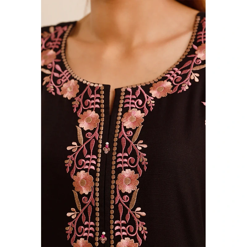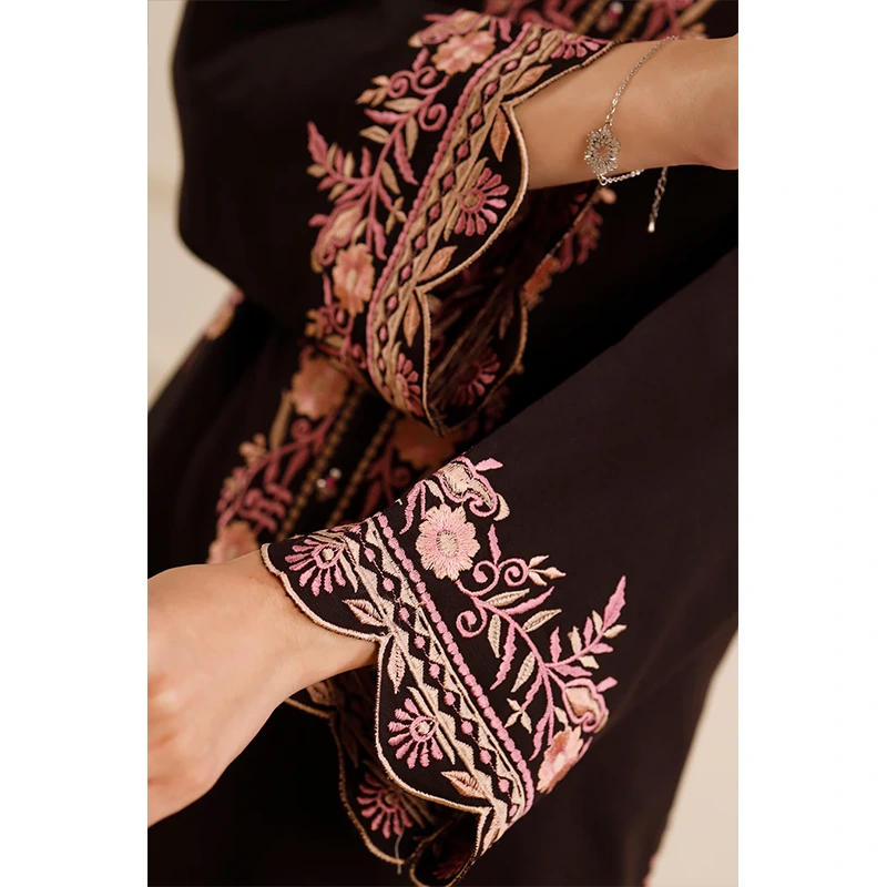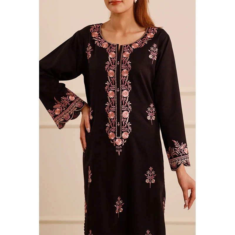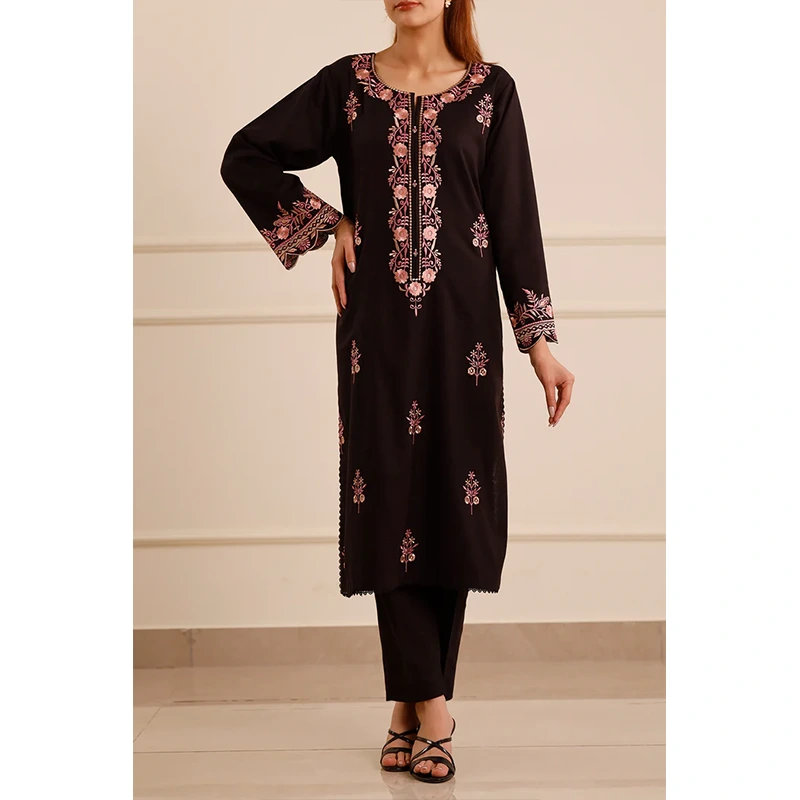 Elevate your wardrobe with Saya.pk’s Solid Embroidered Zari Strip Stitched 2-Piece ensemble in a classic black hue. Crafted from premium Zari Strip fabric, this ready-to-wear set offers both comfort and sophistication, making it ideal for formal events, office wear, or festive occasions. The shirt features intricate embroidery and zari strip detailing, while the trousers are tailored for a sleek, polished look.