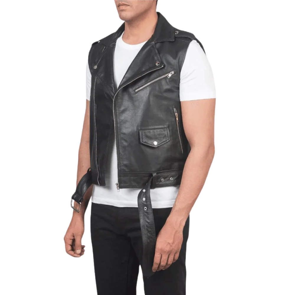 Sullivan Black Leather Biker Vest