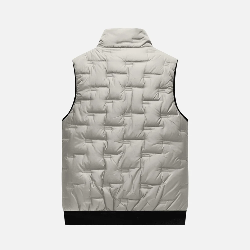 WTOBBY Men’s Stand Collar Quilted Vest, Solid Color Zippered Sleeveless Jacket, Thickened Loose Fit Insulated Layer for Casual and Outdoor Activities,Light Gray M